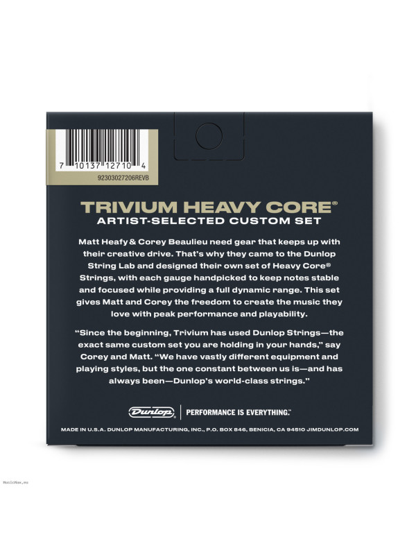 "Since the beginning, Trivium has used Dunlop Strings—the exact same custom set you are holding in your hands," say Corey and Matt." We have vastly different equipment and playing styles, but the one constant between us is—and has always been—Dunlop's world-class strings."
