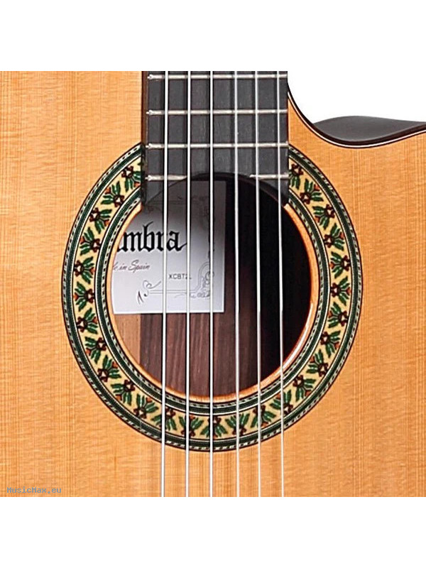 The Alhambra 5 P CW E8, a gem of musical craftsmanship, features a Samanguila neck reinforced with ebony and a fingerboard made of the same material for added durability and smooth playability. With golden tuners, solid AA cedar top, and Indian rosewood back and sides, this guitar is not only visually stunning but also offers exceptional tonal depth. Designed for advanced students, it comes equipped with Fishman Flex M Blend electronics, a cutaway for effortless access to upper frets, D’Addario EXP-44 high-tension strings, and an included 9738 case, making it the perfect choice for those seeking quality and convenience.