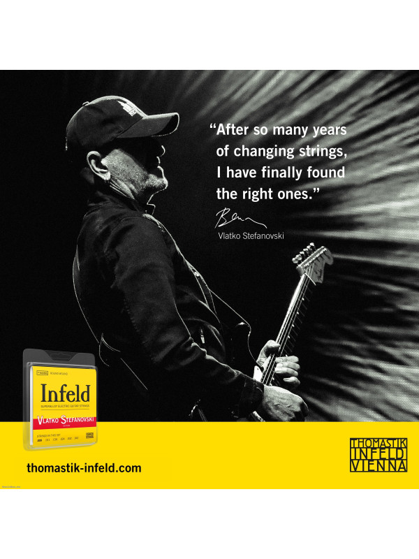 INFELD strings are an ideal choice for guitarists who use a lot of effects, and for long signal paths where signal loss can occur. In celebration of his 50th anniversary, this special edition INFELD NO.IN109VS is dedicated to the exceptional guitarist Vlatko Stefanovski, who uses these strings and is happy to recommend them.