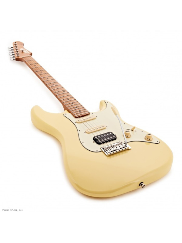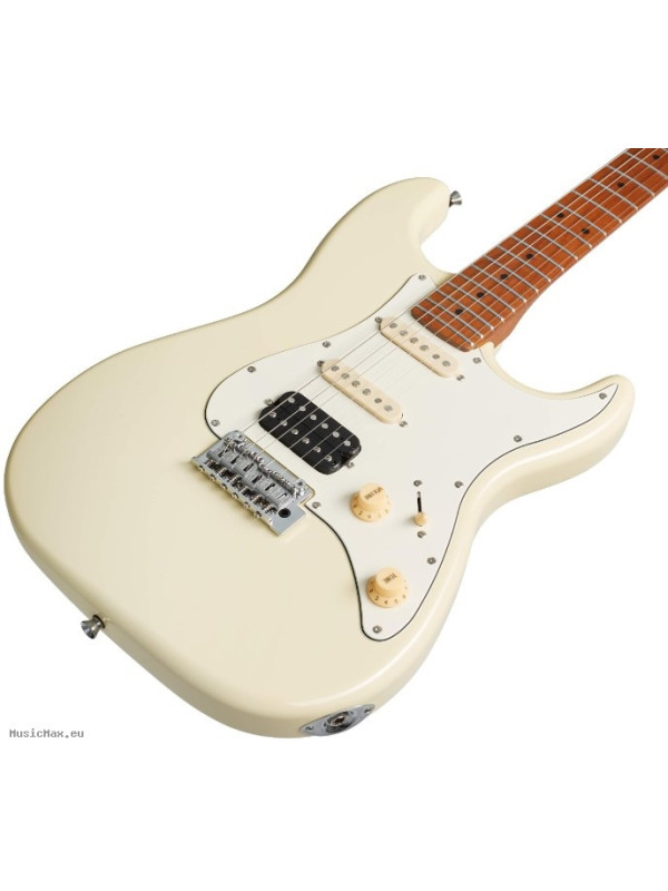 JET JS-400, electric guitar, with exceptional specification and quality of workmanship "superstrat" model, presented here in vintage white and with a neck in "roasted" maple. Jet guitars are inspired by classic high-end guitars and really look and play like much more expensive guitars than they really are!