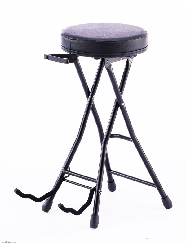 Veston KTS-3 Portable Guitar Stool and Instrument Stand - Comfort and Safety at Every Performance! The portable guitar stool with instrument stand function is foldable, allowing for easy storage and easy transport - ideal for rehearsals, studio or performances.