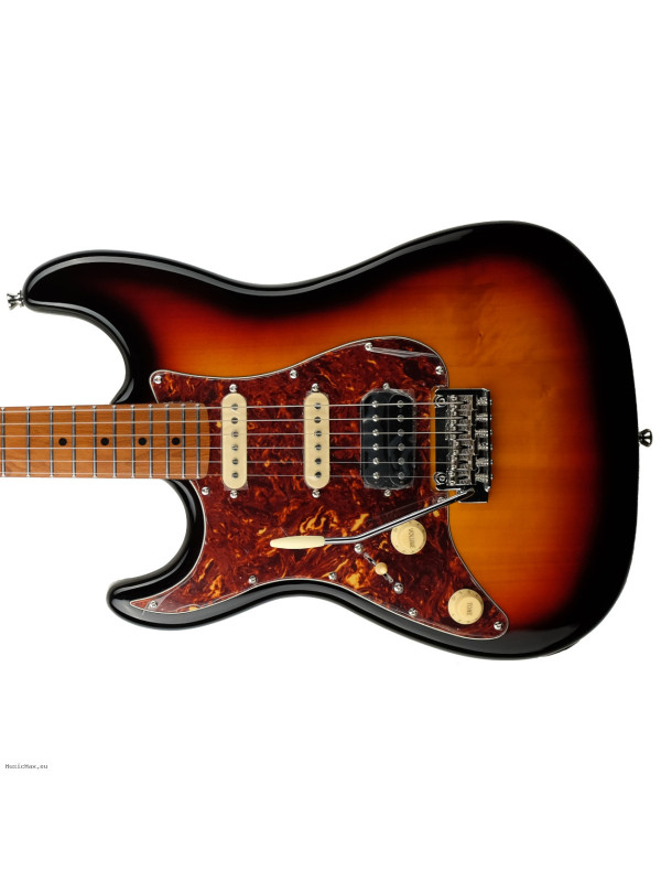 Jet JS-400 is fitted with three ceramic magnet pickups in HSS configuration, resulting a hugely versatile range of tones. The bone nut and Roasted Maple fretboard are usually unseen at this price, as are the upgraded 2-point trem system and sculpted plate-less neck heel.