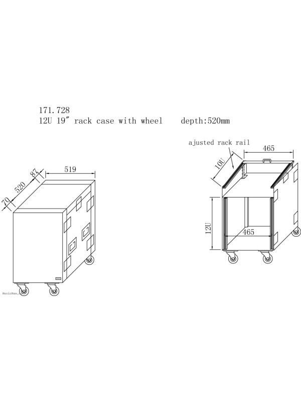 12U De luxe mobile equipment rack with facility (8U) to mount a 19" mixer on top of the unit.